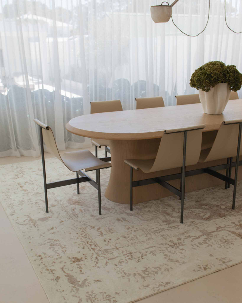 If you're looking for a farmhouse-style rug, start with a neutral color rug. It's natural hue fits right in with antiques making it great for living rooms or bedrooms. Materials with a natural element such as Sisal or Jute can help achieve this style. It is stylish yet practical and that is why this style is here to stay.