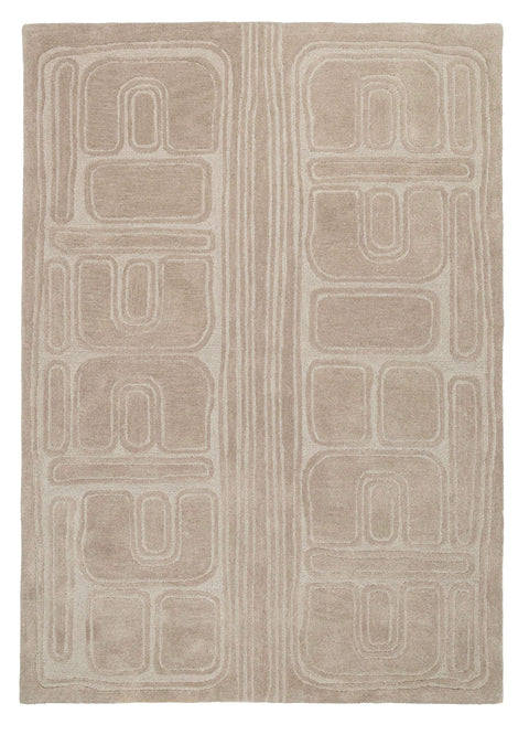 Loom Sand Beige and Stone Tribal Pattern Indoor Outdoor Rug