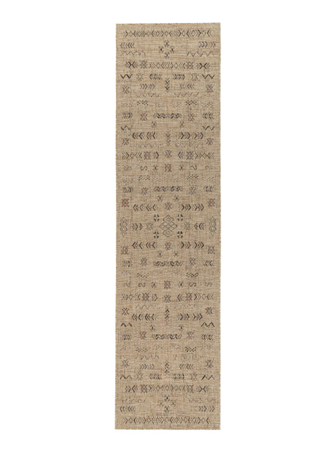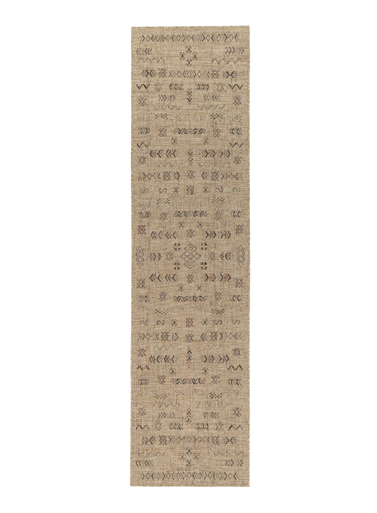 Loom Sand Beige and Stone Tribal Pattern Indoor Outdoor Runner Rug