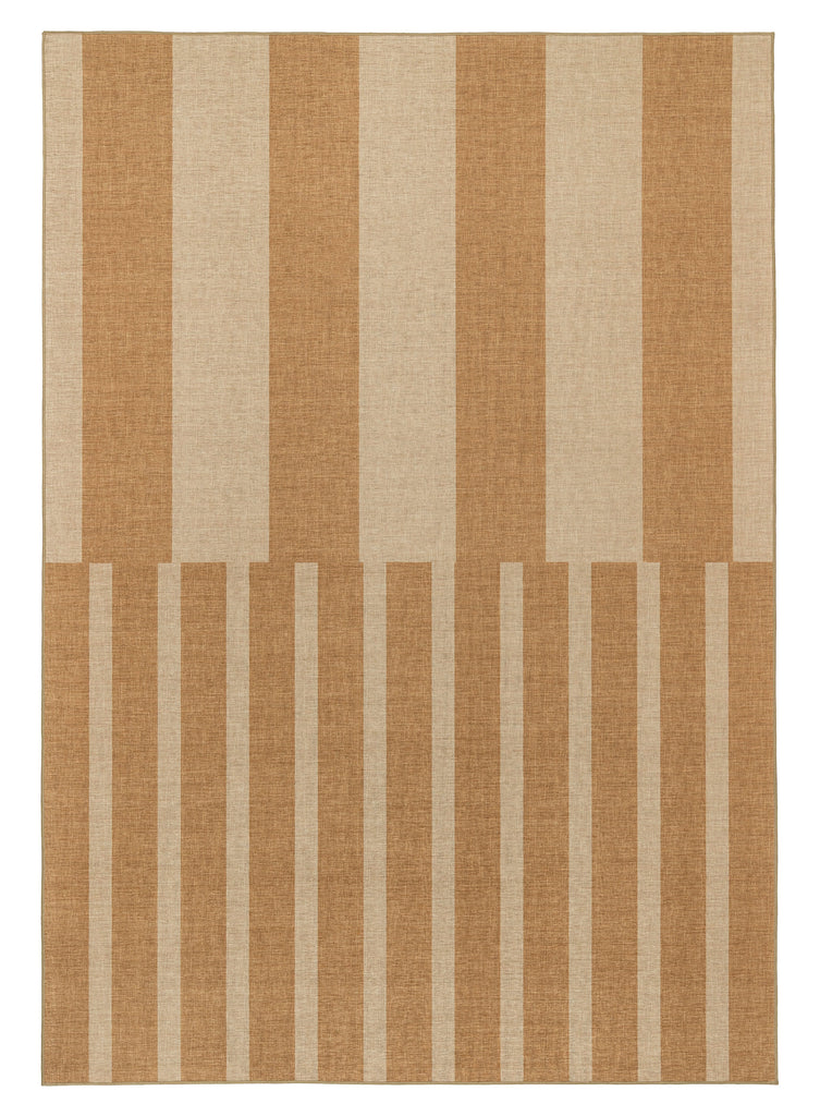 Ravello Warm Beige and Golden Sand Striped Indoor Outdoor Rug