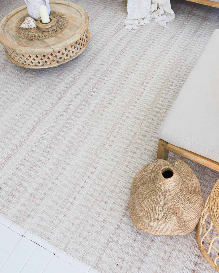 Alva is hand-woven in India from 100% recycled PET fibres. PET is a fantastic eco-friendly fibre made from recycled plastic bottles but with the silky smooth underfoot feel of cotton.