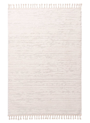 Serena Ivory Cream Textured Tassel Rug