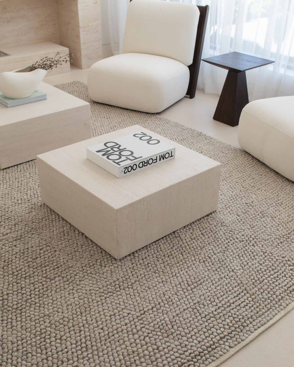Amaia is a recycled PET rug with chunky hand-looped pile.