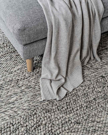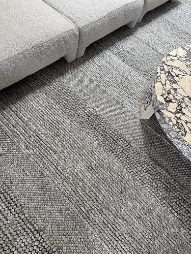 Woven, looped and braided techniques have been used to stunning effect and together give the rug a gorgeous sense of movement and texture. Complemented by the modern marbled grey colour, this tactile design would be the perfect addition to the bedroom or lounge room to add a sense of warmth.