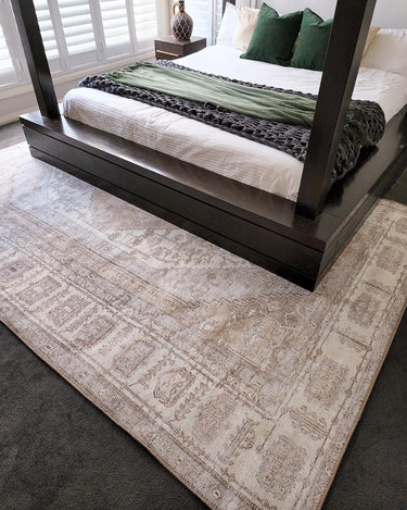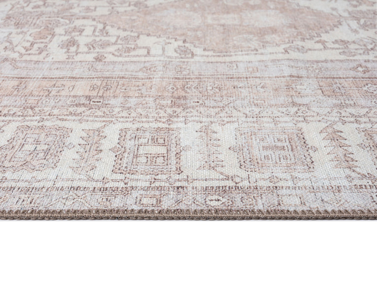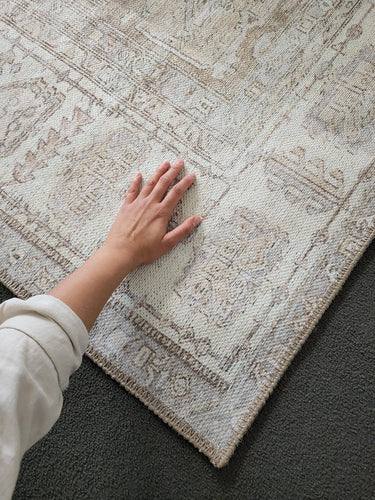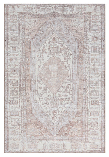 Aneesa Beige and Cream Traditional Distressed Washable Rug
