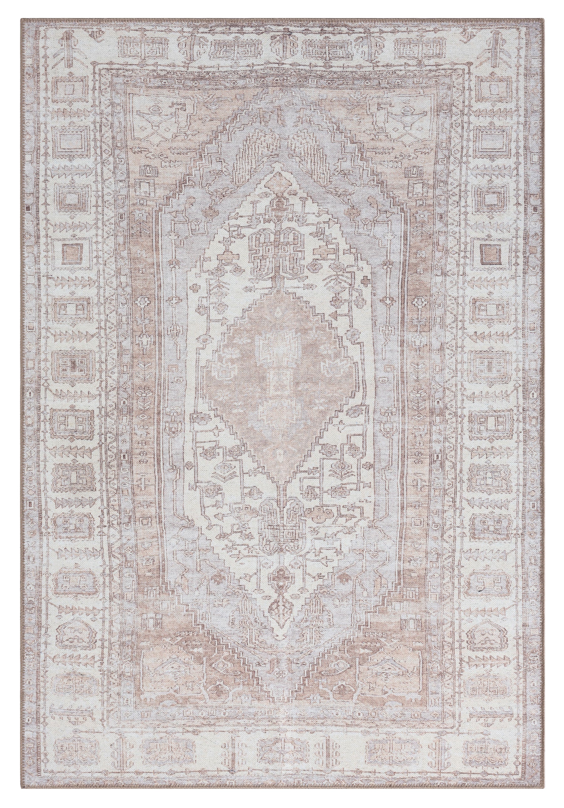 Tinka Beige and Grey Traditional Distressed Washable Rug