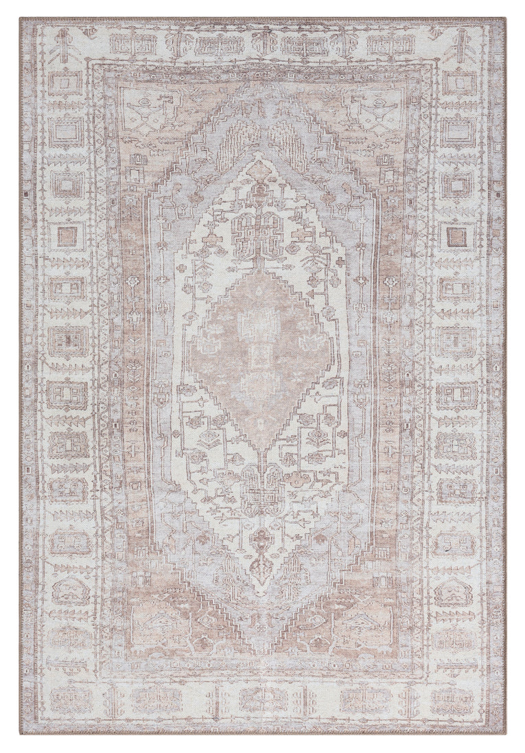 Yvana Brown and Beige Traditional Distressed Washable Rug