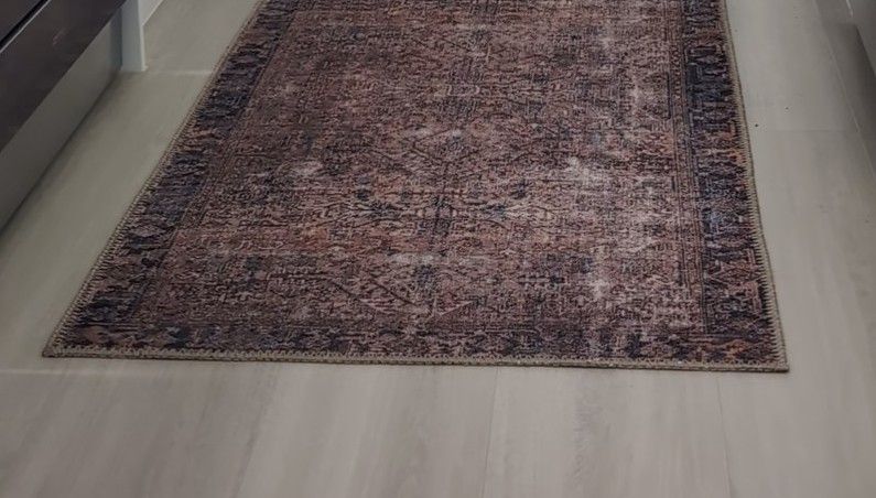 This rug sits between the island and the counter top, compliments the space beautifully and protects my floor from wear and tear. The design and pattern is exactly what I wanted. Easily washed and easily moved and repositioned during vacuuming.