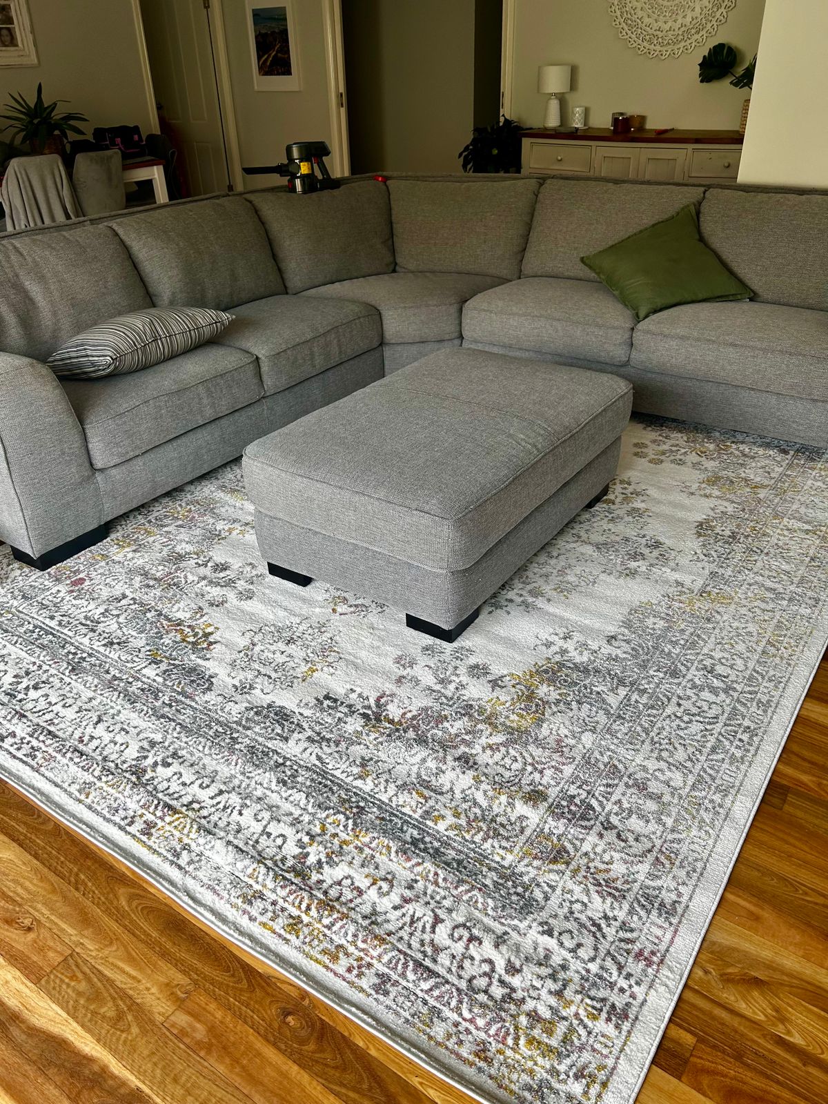 The rug is perfect in the space. The colour is subtle but still gives life to the room with an grey sofa, and works perfectly with accessories.