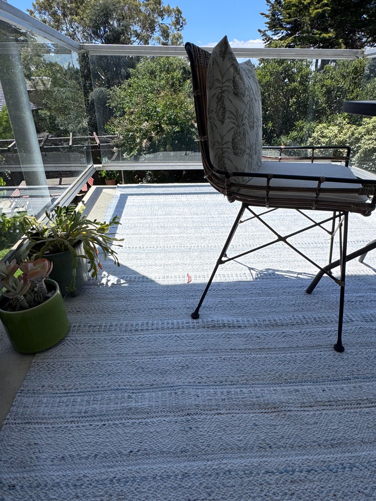 PET is a fantastic eco-friendly material made from recycled plastic bottles but with the silky smooth underfoot feel of cotton. Due to the durable nature of PET fibres, she is suitable for both indoor and semi-outdoor use. An underlay is essential for indoor placement!