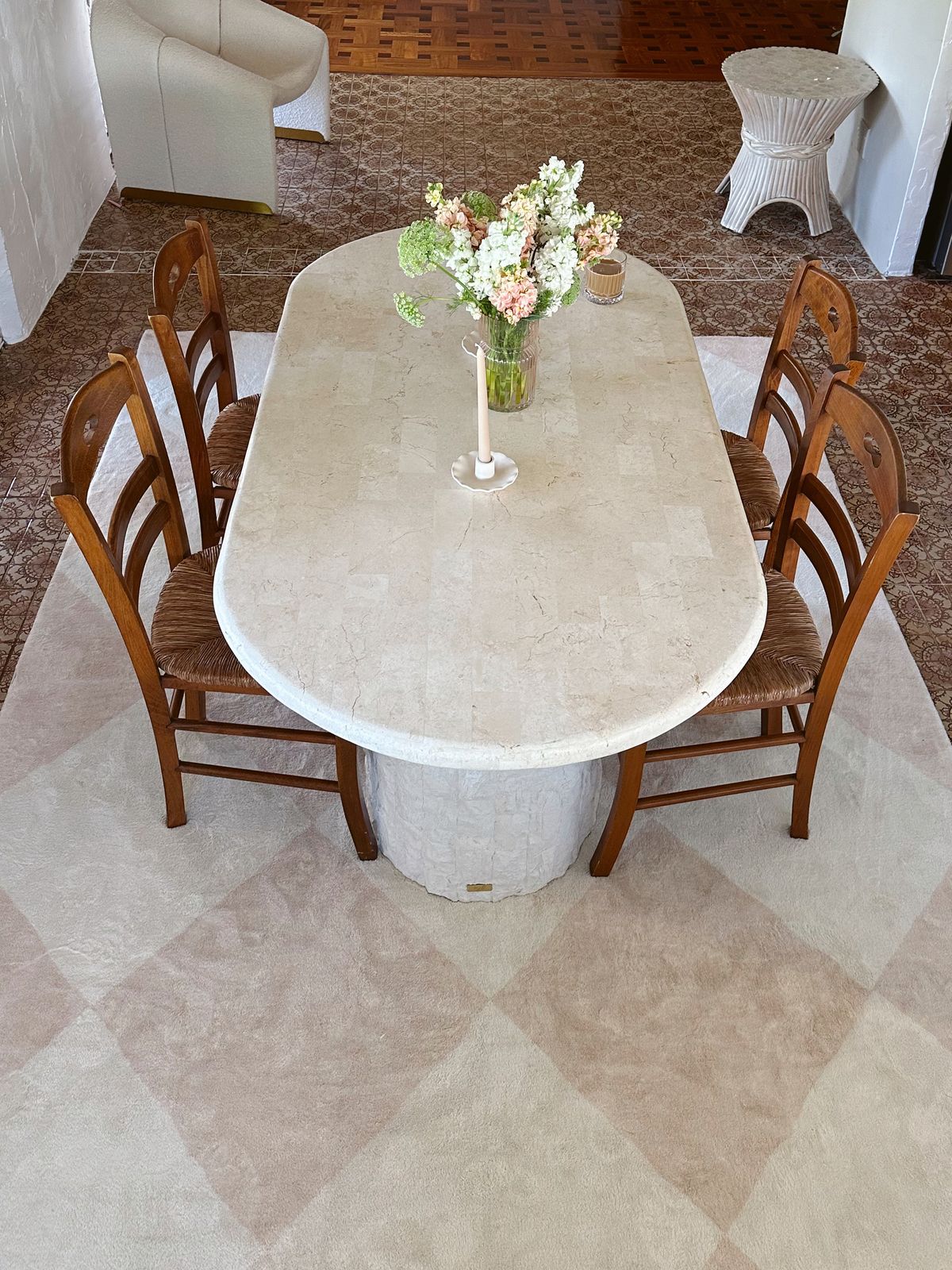 The beautiful minimal design is printed on top of the fibres giving it a faded effect with a subtle vintage look. A timeless and elegant addition to a modern, classic, bohemian, or vintage space.