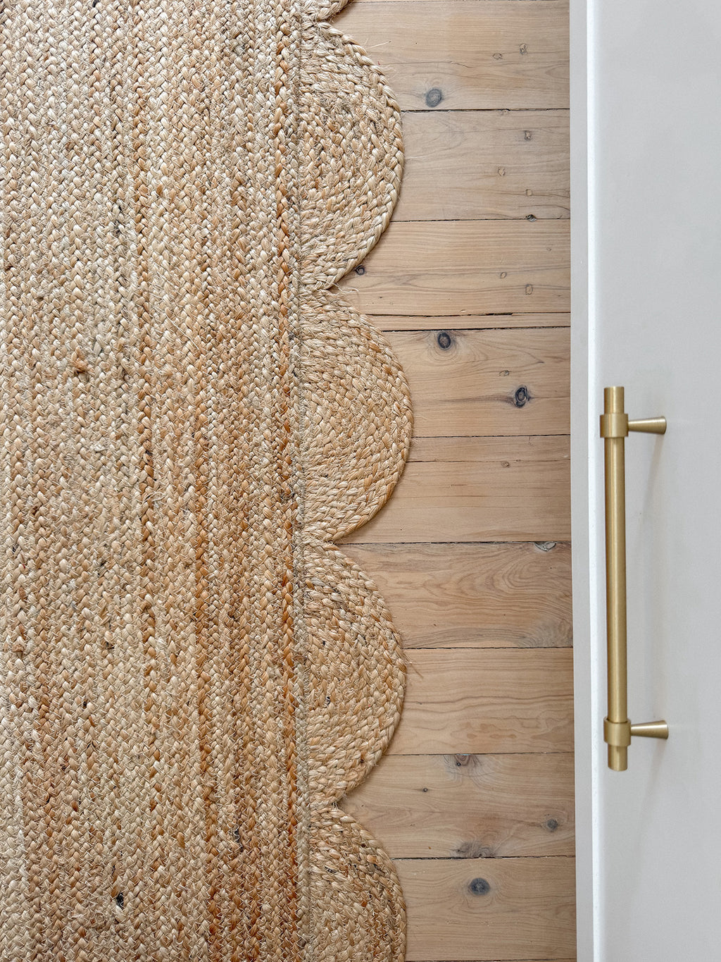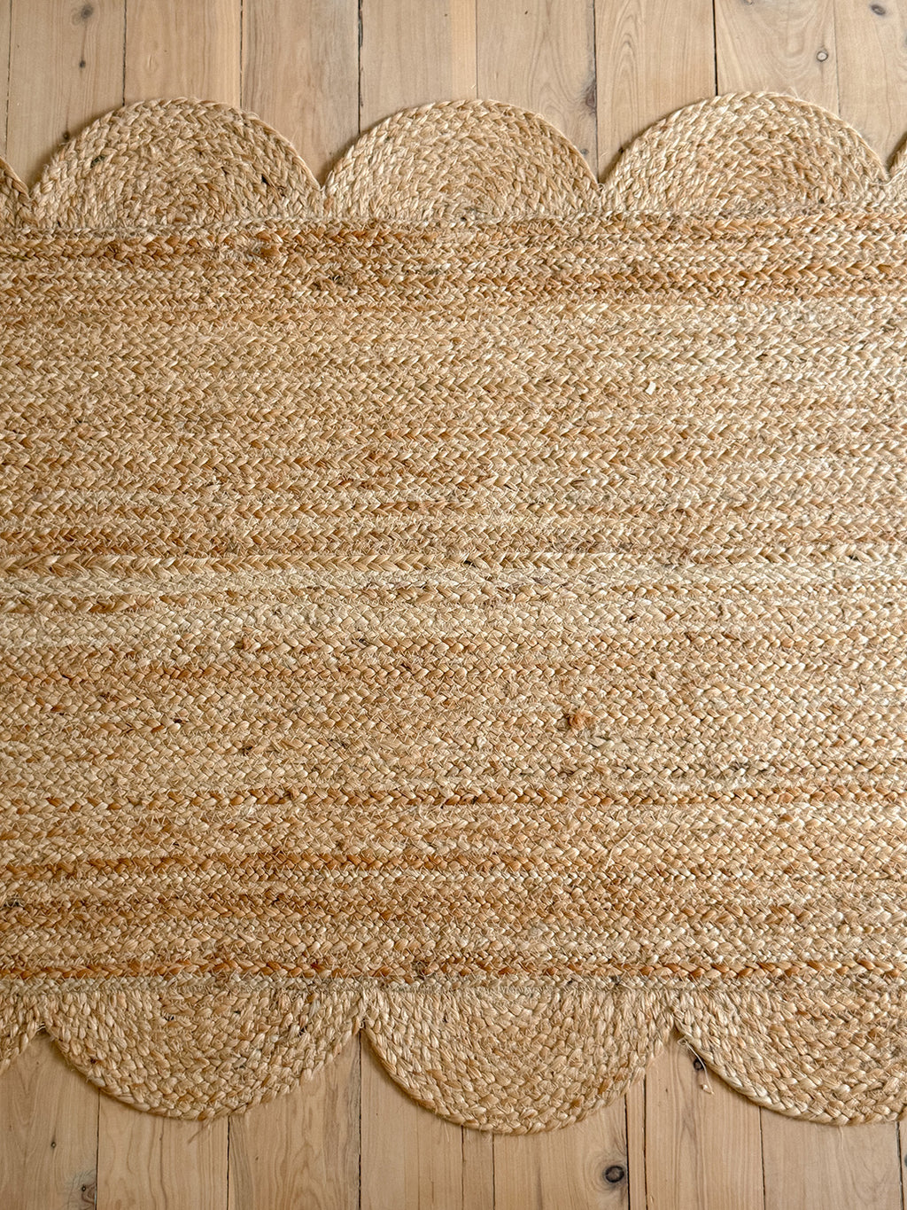 Ejiya is a lovely flatweave jute runner rug adorned with scallop borders.