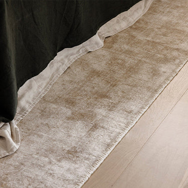 A rug introduces warmth and softness underfoot. Position it two-thirds under the bed, allowing it to extend beyond the sides and foot.