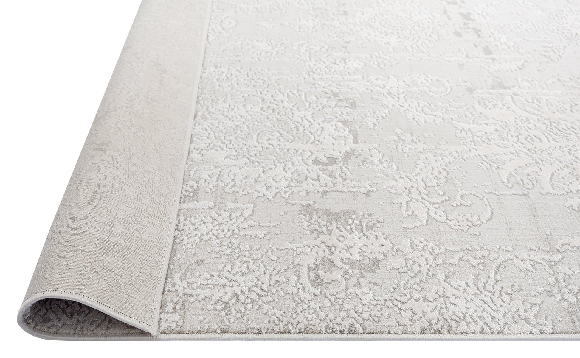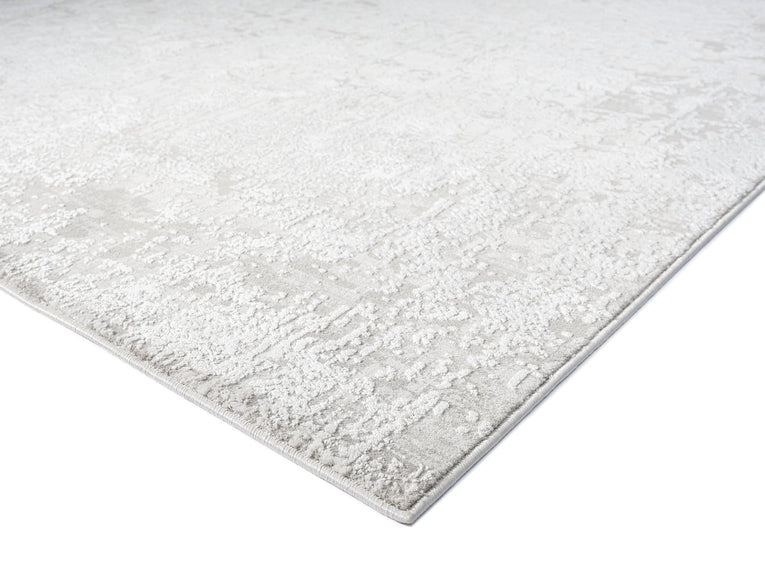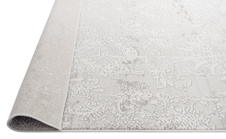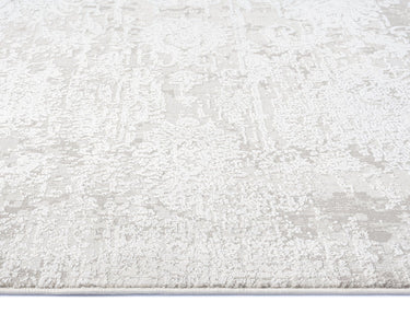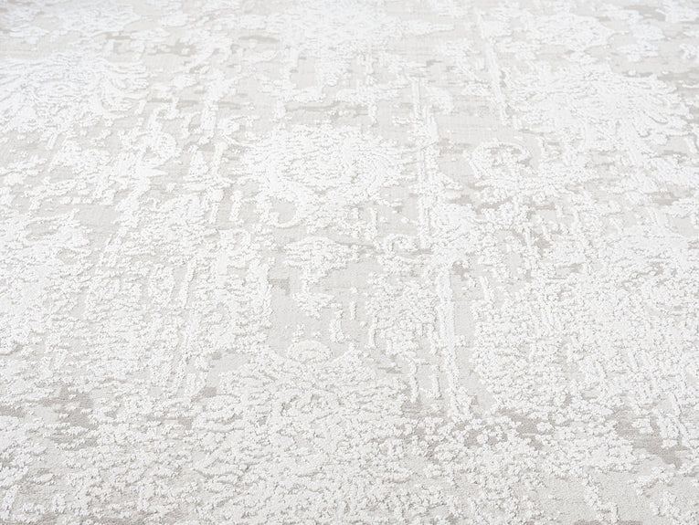 An exclusive design in the Miss Amara Collection, a distressed style decorated with elaborate floral motifs and abstract lines in transitional multi-tones of ivory and grey. Featuring an intentionally created distressed look to give it a vintage feel (a treatment called 'abrash' to describe colour variations common in antique rugs). A timeless and elegant addition to a modern, tribal, coastal, bohemian or vintage space.