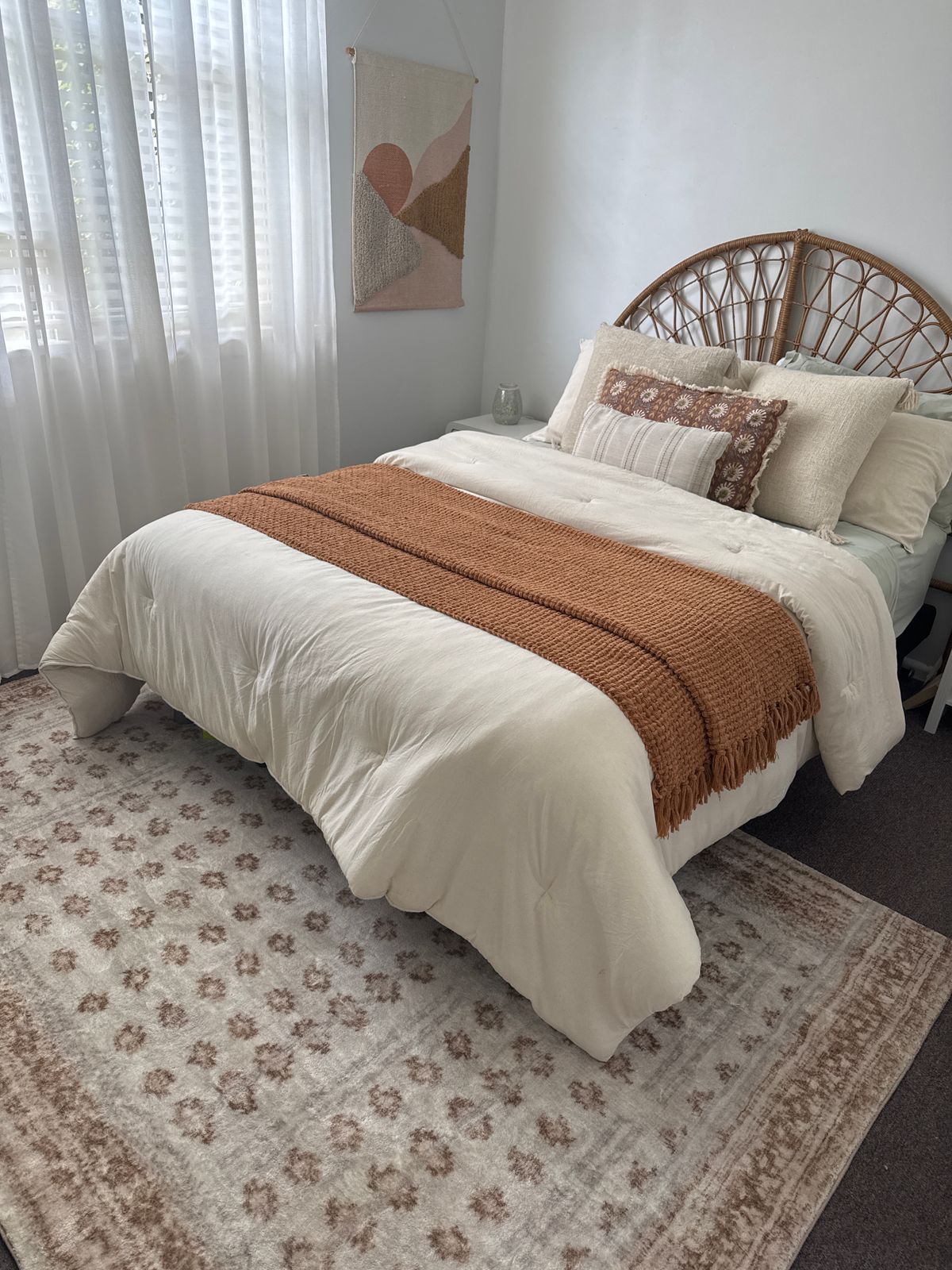 Machine-woven using modern looming techniques and is constructed from a plush 8mm pile of ultra soft polyester fibres. An absolute dream underfoot! It’s a machine washable and foldable rug, making it a perfect rug for medium-traffic zones, kid and pet-friendly homes. Designed with a built-in underlay to keep the rug in place to prevent any slipping or tripping!