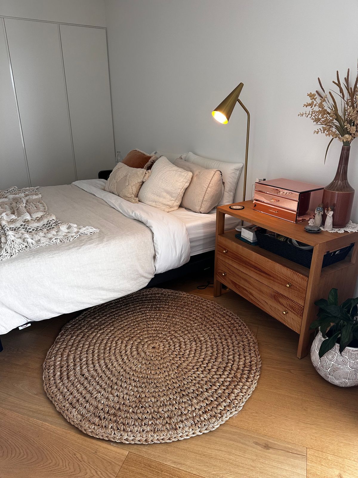 Made exclusively for our Miss Amara Collection, Georgia has been handwoven in India from 100% eco-friendly jute fibres. This design heroes the natural texture and brown tan colour of this gorgeous organic material. The perfect addition to modern, bohemian and coastal style space!