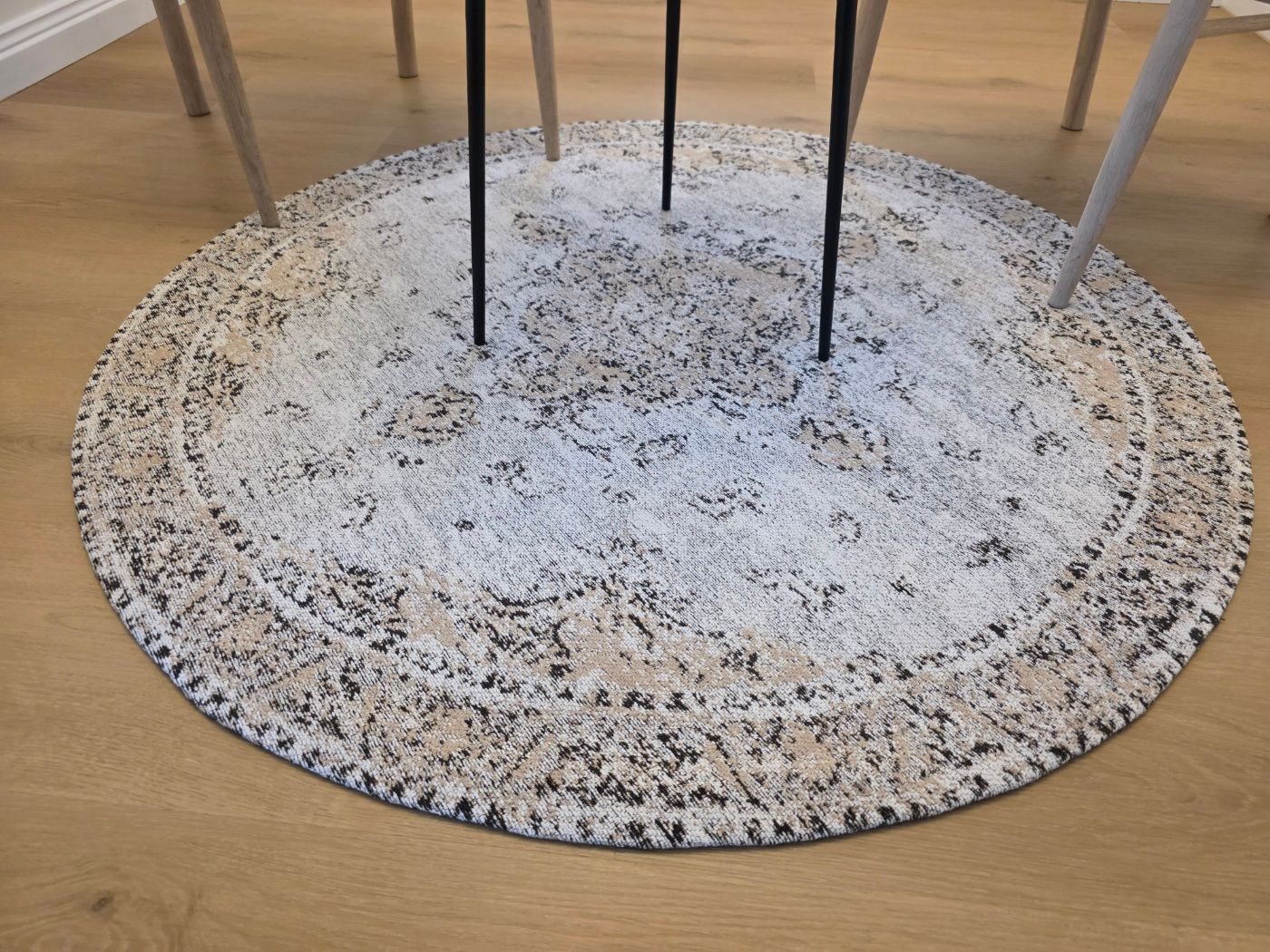 Due to the nature of textile dyes, colour transfer may occur if the rug comes into contact with liquids. Promptly blot any spills with a clean, dry cloth to minimise potential staining.
