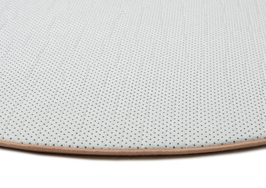 Each playmat is vacuum sealed for delivery, so some creasing is expected on arrival. Light steaming will help release these creases and allow the mat to settle into its intended shape and finish. For day-to-day care, spot clean as needed and blot spills promptly with a damp cloth to maintain its appearance.