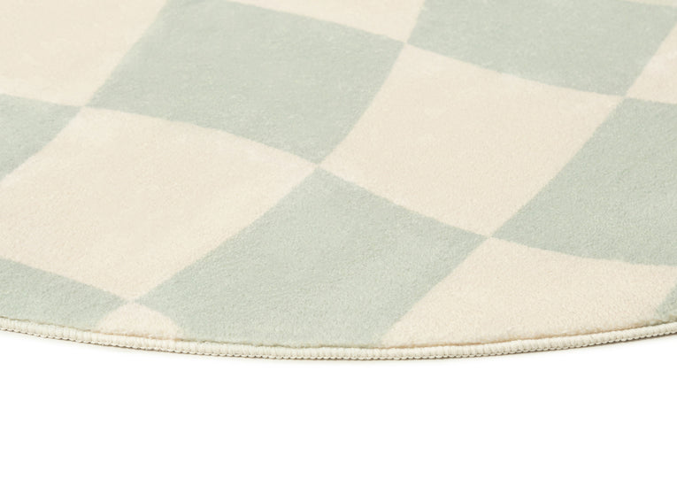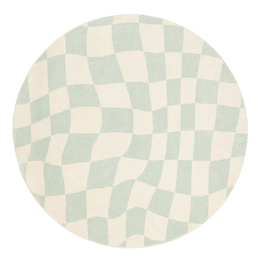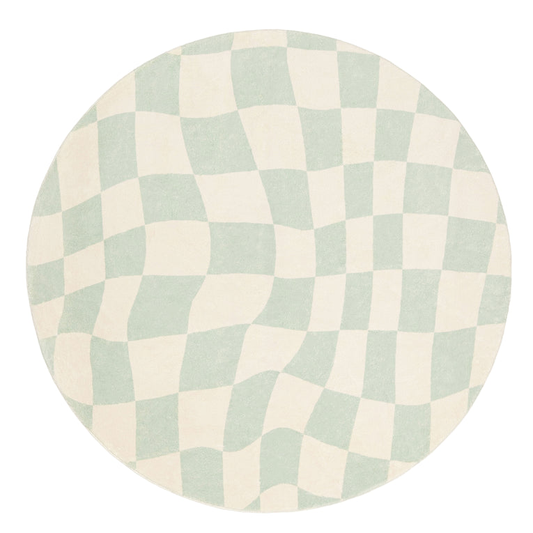Ilenna Green and Ivory Checkered Washable Round Rug