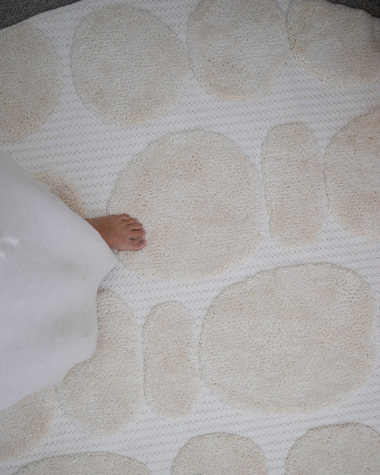 Jacinta is an ivory shag rug with abstract pebble pattern.