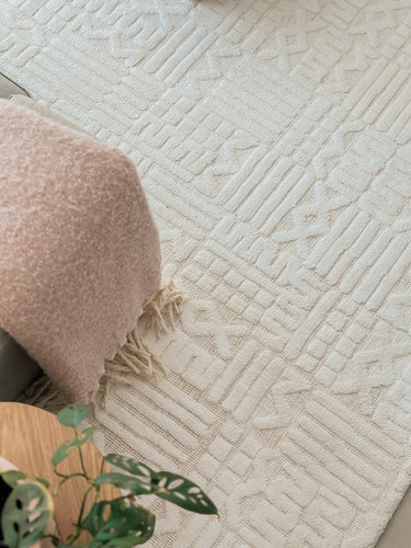 A lovely addition to a modern, tribal or bohemian space complimenting neutral and natural palettes. Inspired by the natural lines and organic shapes of nature, this design celebrates the deep detailed carved contours and tones of natural rock formations.
