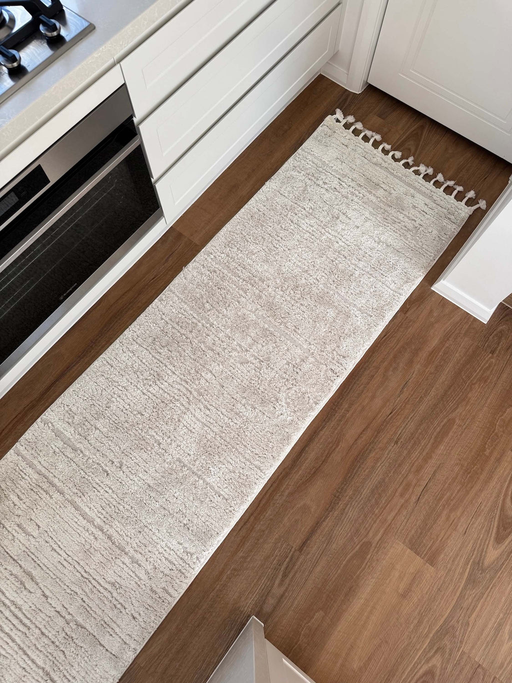 I absolutely love this rug runner purchasing last year and this year in the Black Friday sales I bought a backup! We live in an apartment and the runner leads into the open area where we have just bought the 400 x 300 Leilani to match. Underneath we put carpet underlay which we had and both feel very soft underfoot. The runner has worn very well over the year but we take our shoes off at the door, this runner (and rug) are very beautiful!!!