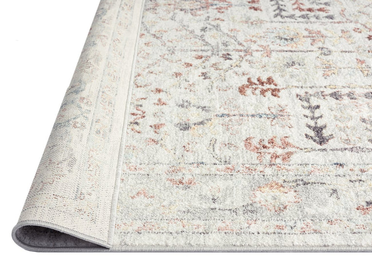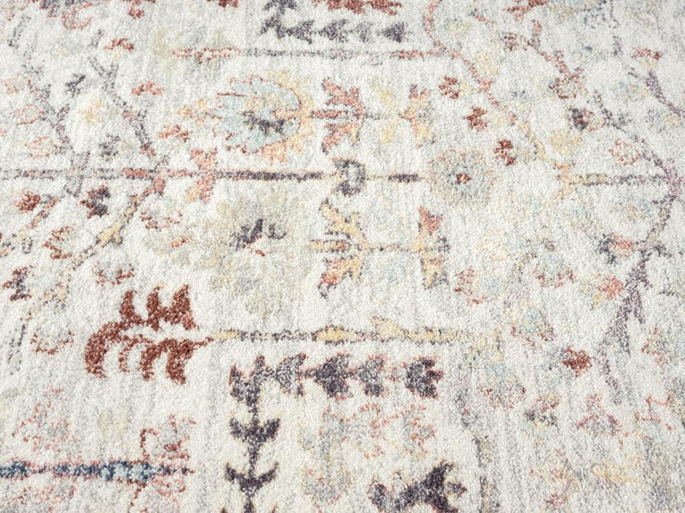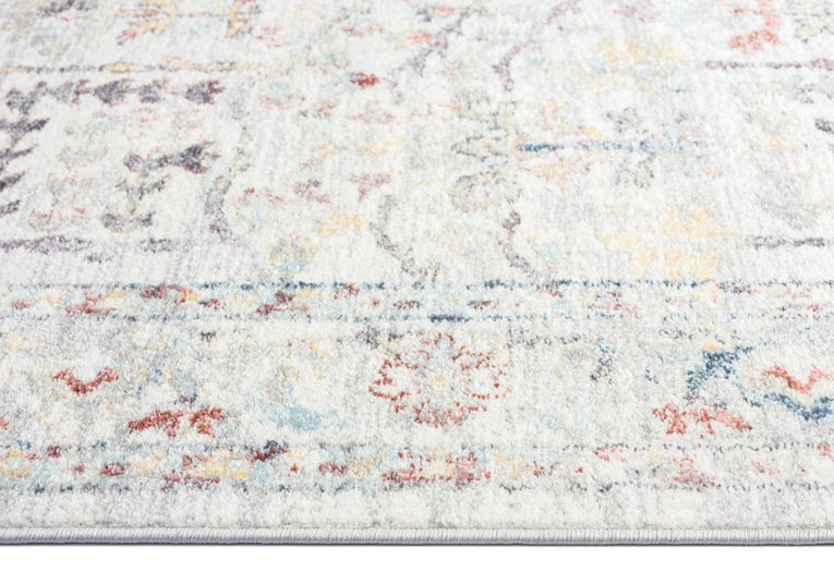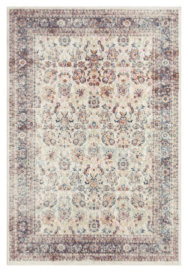 A modern design with an old world charm, Livvie is a bordered vintage style that’s decorated with elaborate floral motifs and ornate patterns in transitional multi-tones of cream, purple, blue, yellow and orange. A timeless and elegant addition to a modern, classic, bohemian or vintage space.