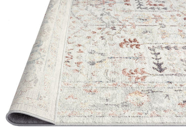 Livvie is a lovely cream blue and orange traditional distressed rug with a beautiful multi-toned floral motif.