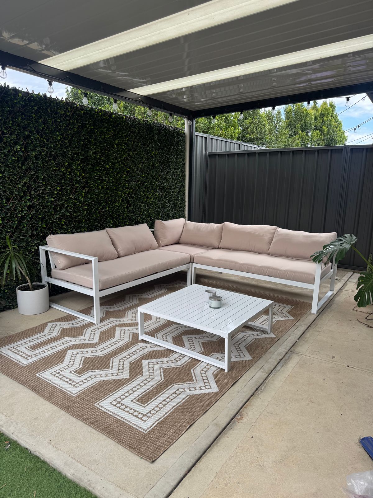 Obsessed what my new rug, matches my outdoor setting and really lightens the area up!