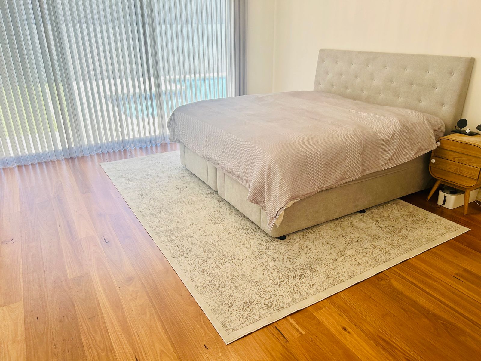 Thanks so much for your wonderful feedback! We're absolutely thrilled to hear you're loving the gorgeous Madison Ivory And Grey Traditional Distressed Rug in your master bedroom! It's fantastic to know the 330x240 size was perfect for under your super-king bed - getting the sizing just right makes such a difference. The lovely subtle grey pattern of the traditional distressed design really does create such a beautiful and calming atmosphere for a bedroom. We're also delighted to hear she's providing just the right amount of softness to balance those timber floors - there's nothing quite like finding that perfect rug that adds both comfort and style to your space! Really appreciate you taking the time to share your experience. Kath - Miss Amara.
