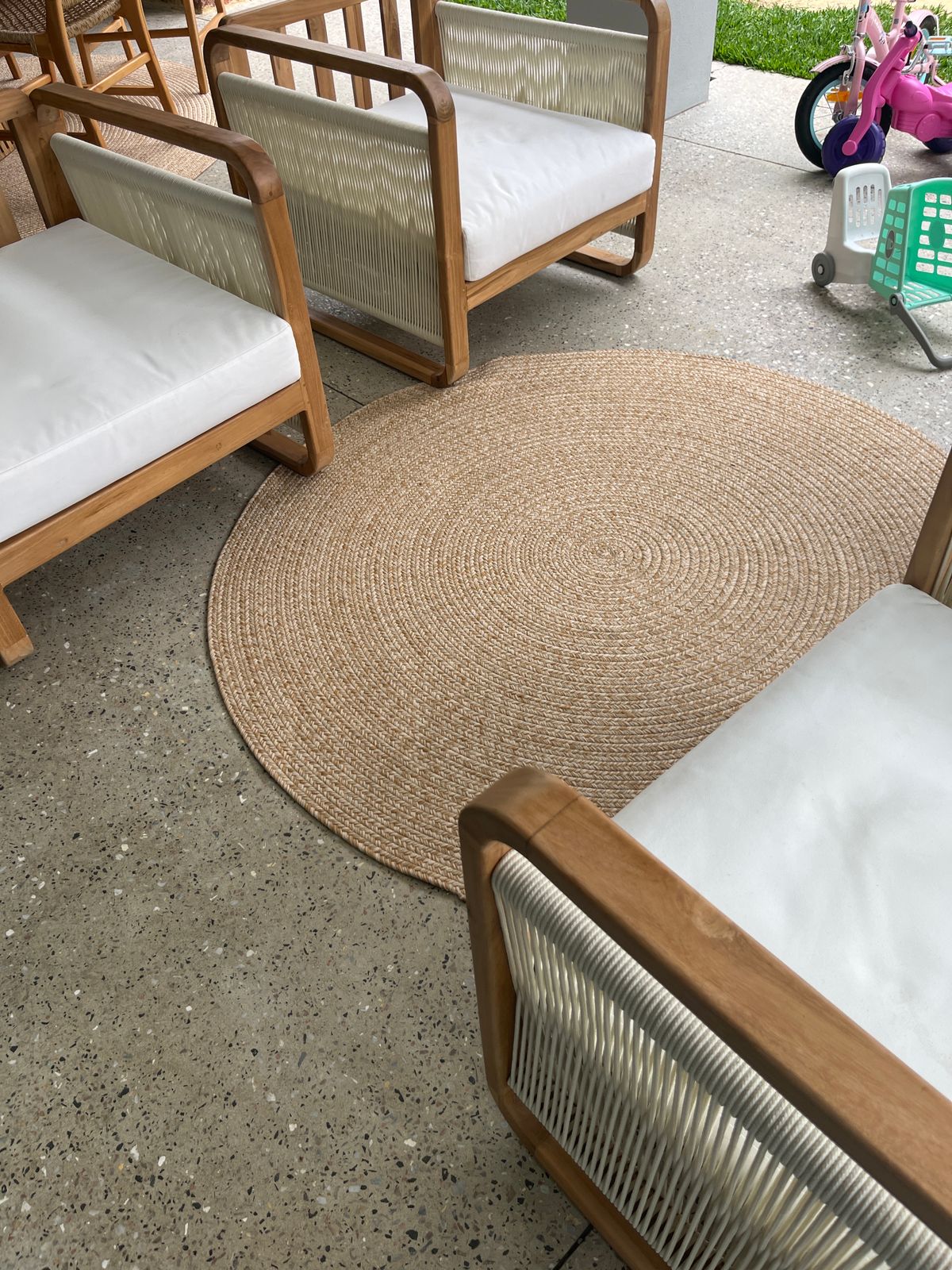 The rug is sitting pretty in our undercover alfresco area and I'm very happy with the look of it