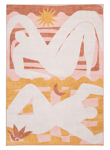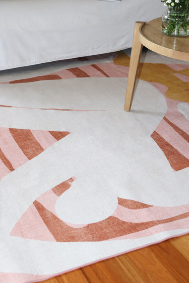Make a bold and playful statement with our Menaka rug. She’s a machine washable, low-pile chenille rug with a rust, pink, and mustard design. Her colourful palette will add personality to any space.