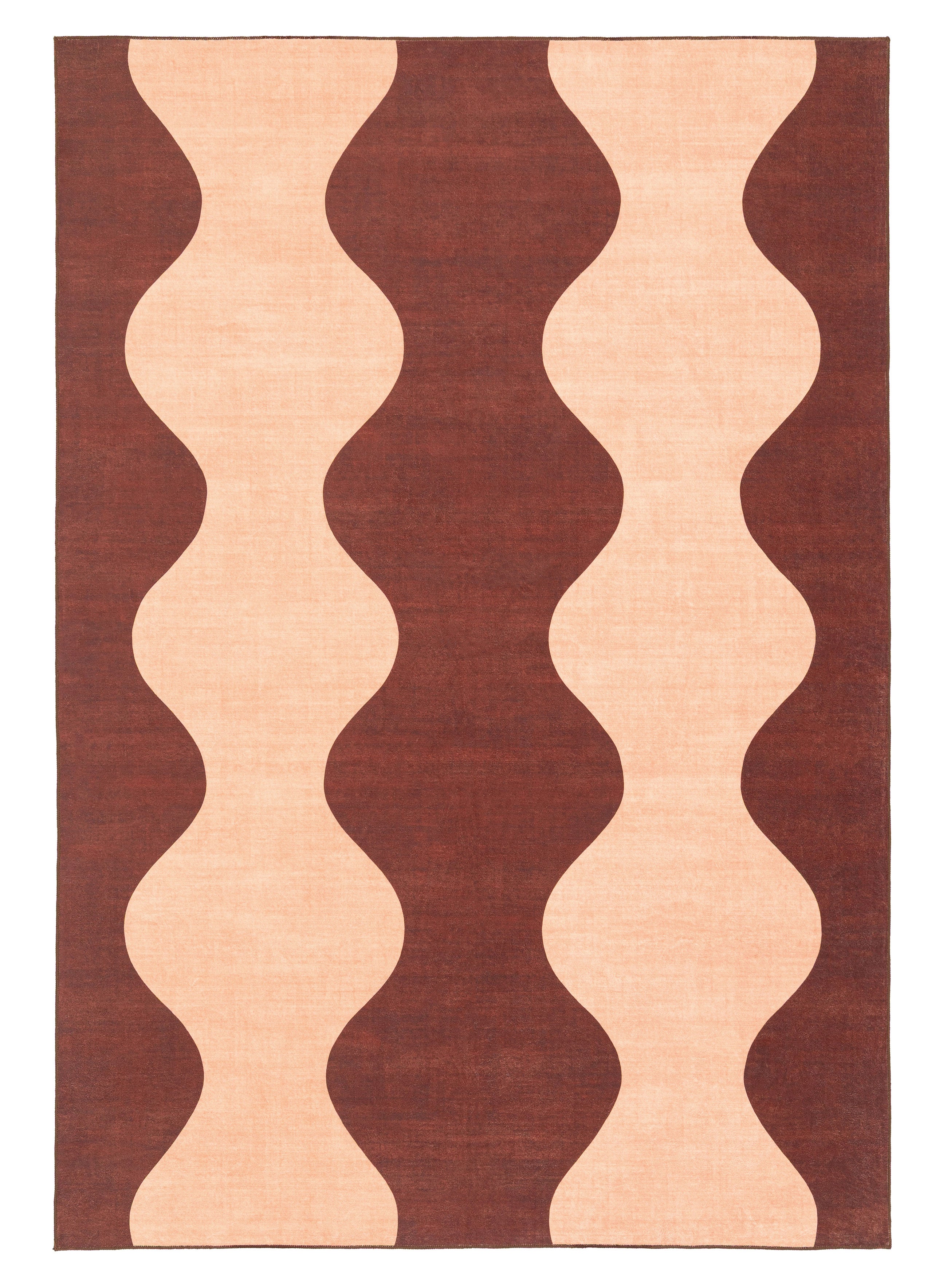 The sculptural lines and soft contrast of colour make Merida easy to style. Pair it with pared-back furniture for a modern, graphic look, or layer it into relaxed, creative interiors where its curved pattern and warm tones add personality and rhythm.