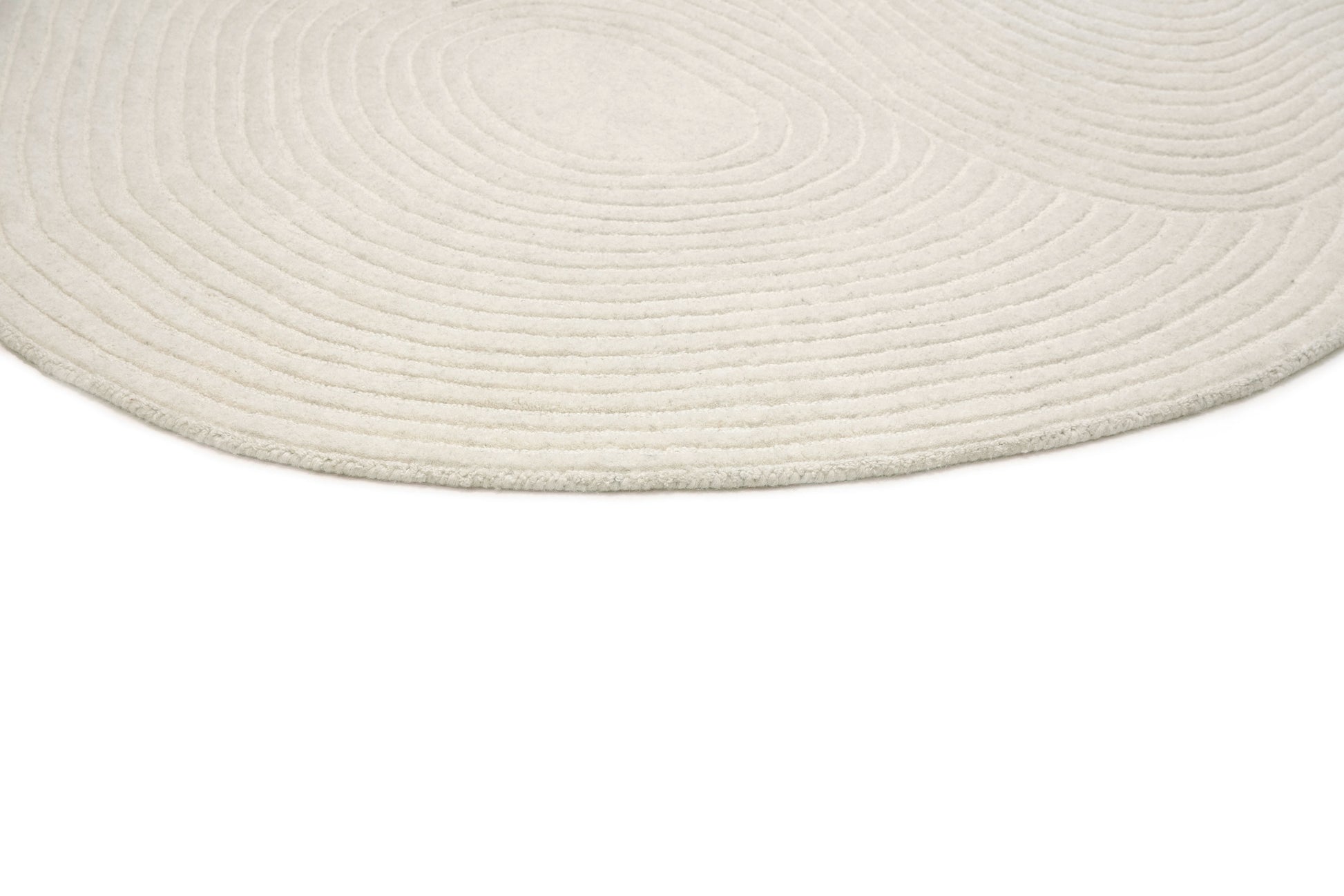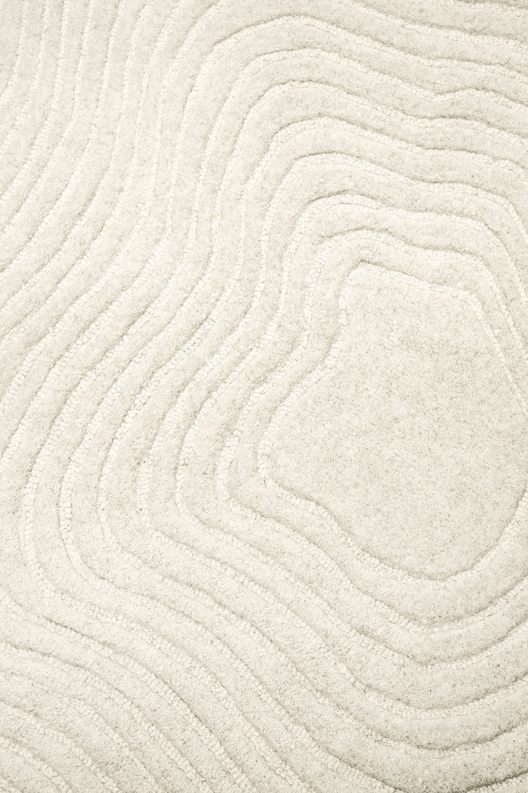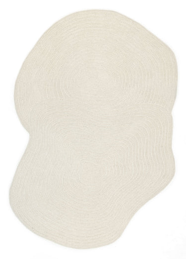 Nafiya is a stunning irregular-shaped wool-rich rug in cream and beige tones.