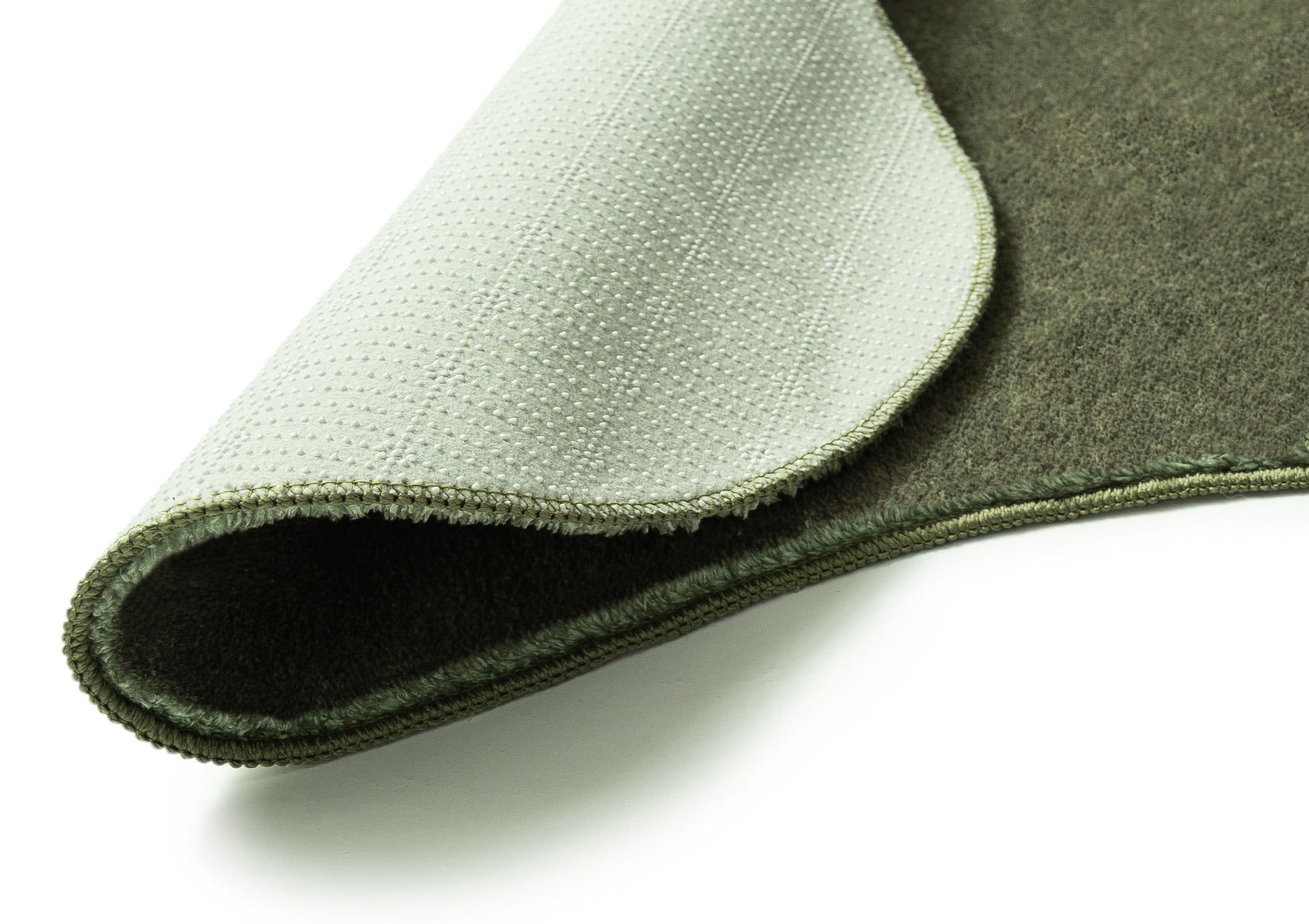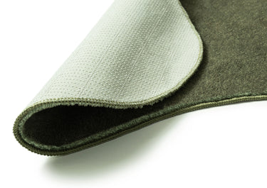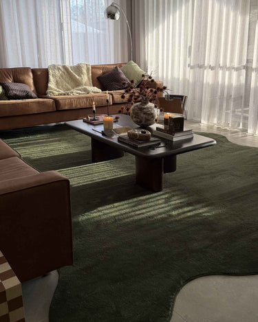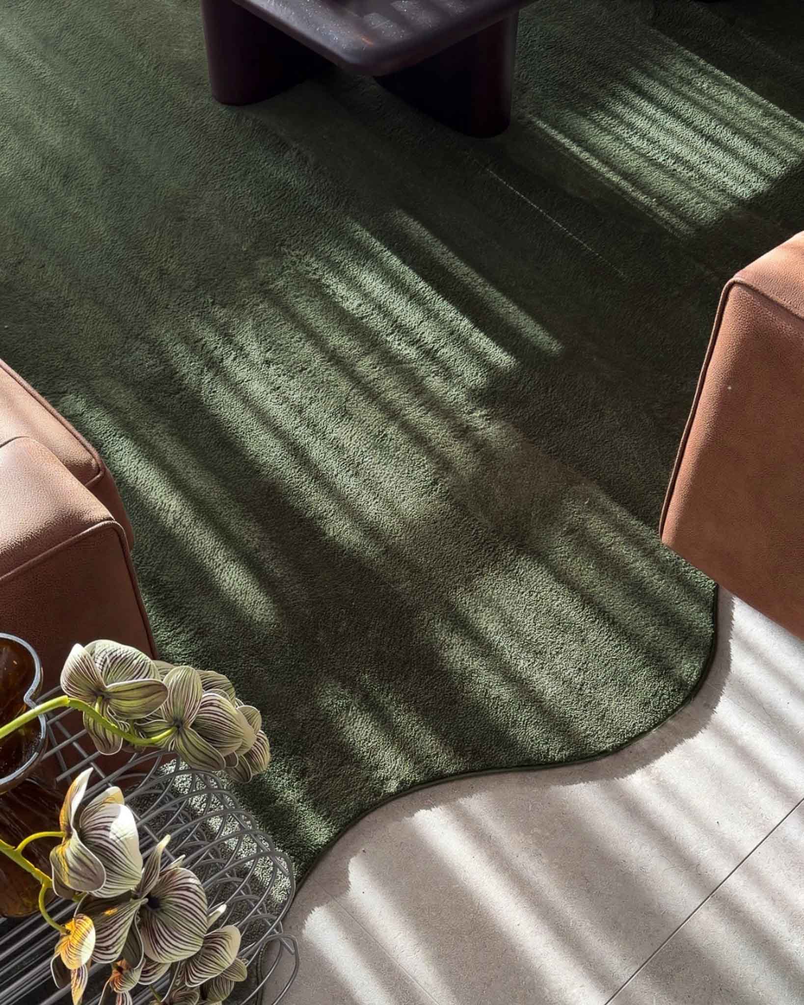 Sandara is a washable and foldable rug defined by its softly scalloped edges and rich olive tone. The curved outline adds a gentle sense of shape and definition, offering a considered alternative to straight-edged designs while keeping the overall look calm and cohesive.