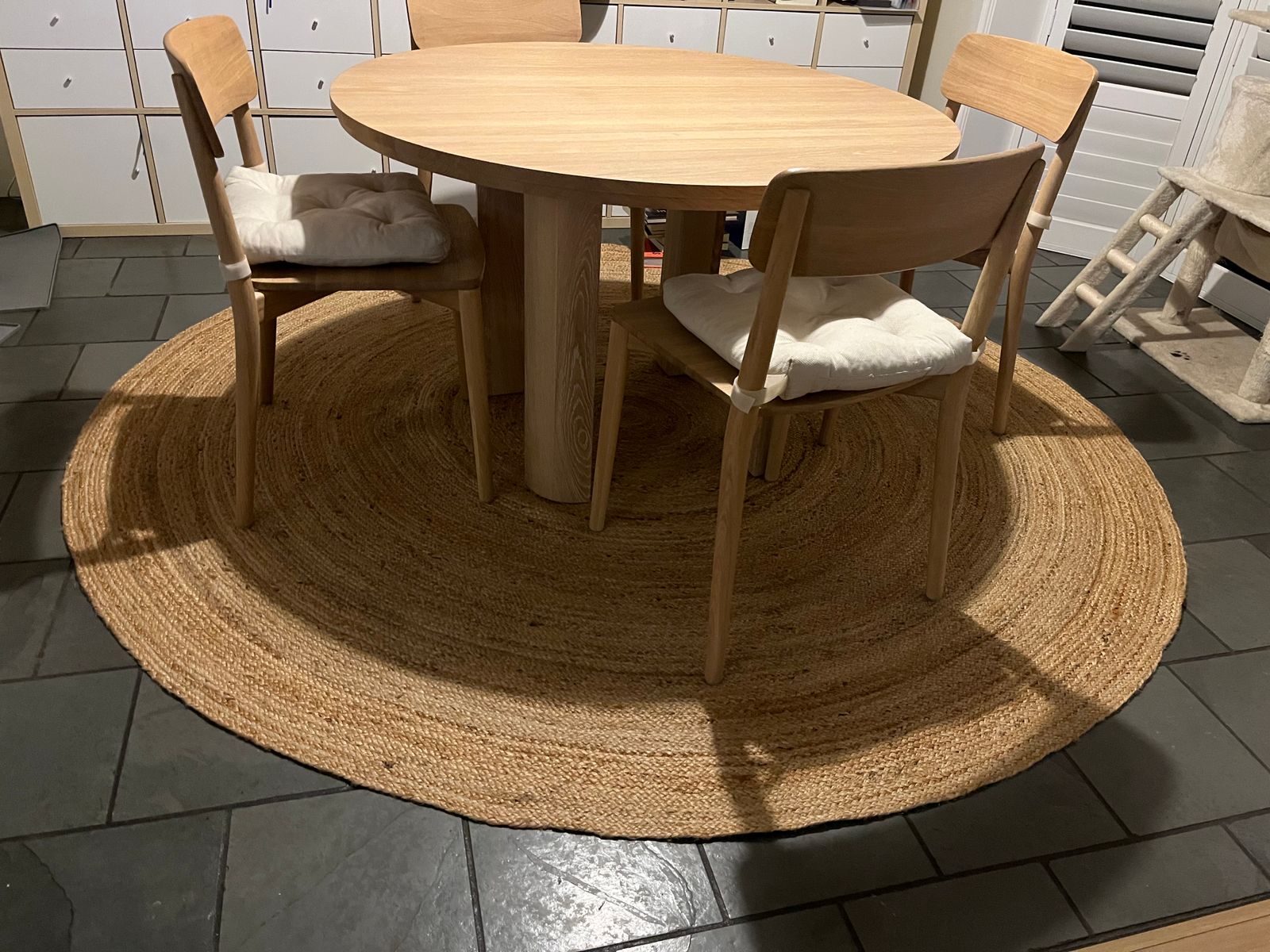 Love it! So perfect for my round dining table that I now can't imagine when I didn't have it. Quality and price is great! The only thing is that the package was ripped when I received it in the post but I checked and the rug was ok. Definitely recommend. :-)