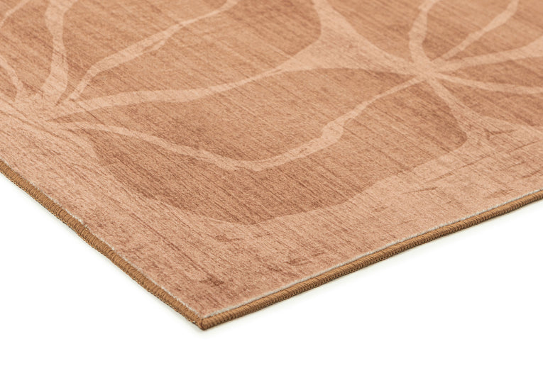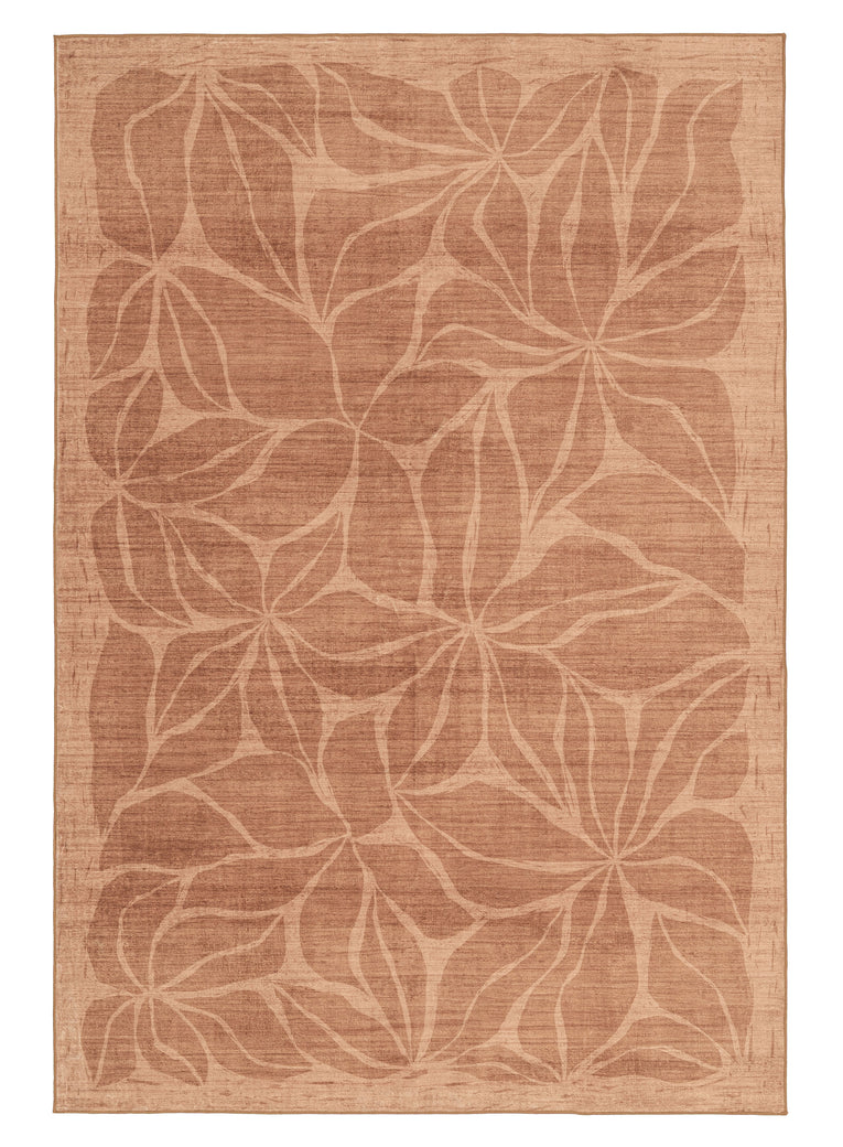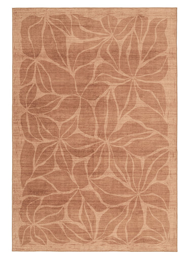 Sitar is a washable and foldable rug featuring an all-over floral motif that brings warmth and organic movement into a space. Layered botanical forms are softly rendered across a rich rust base, finished with a softly timeworn appearance.