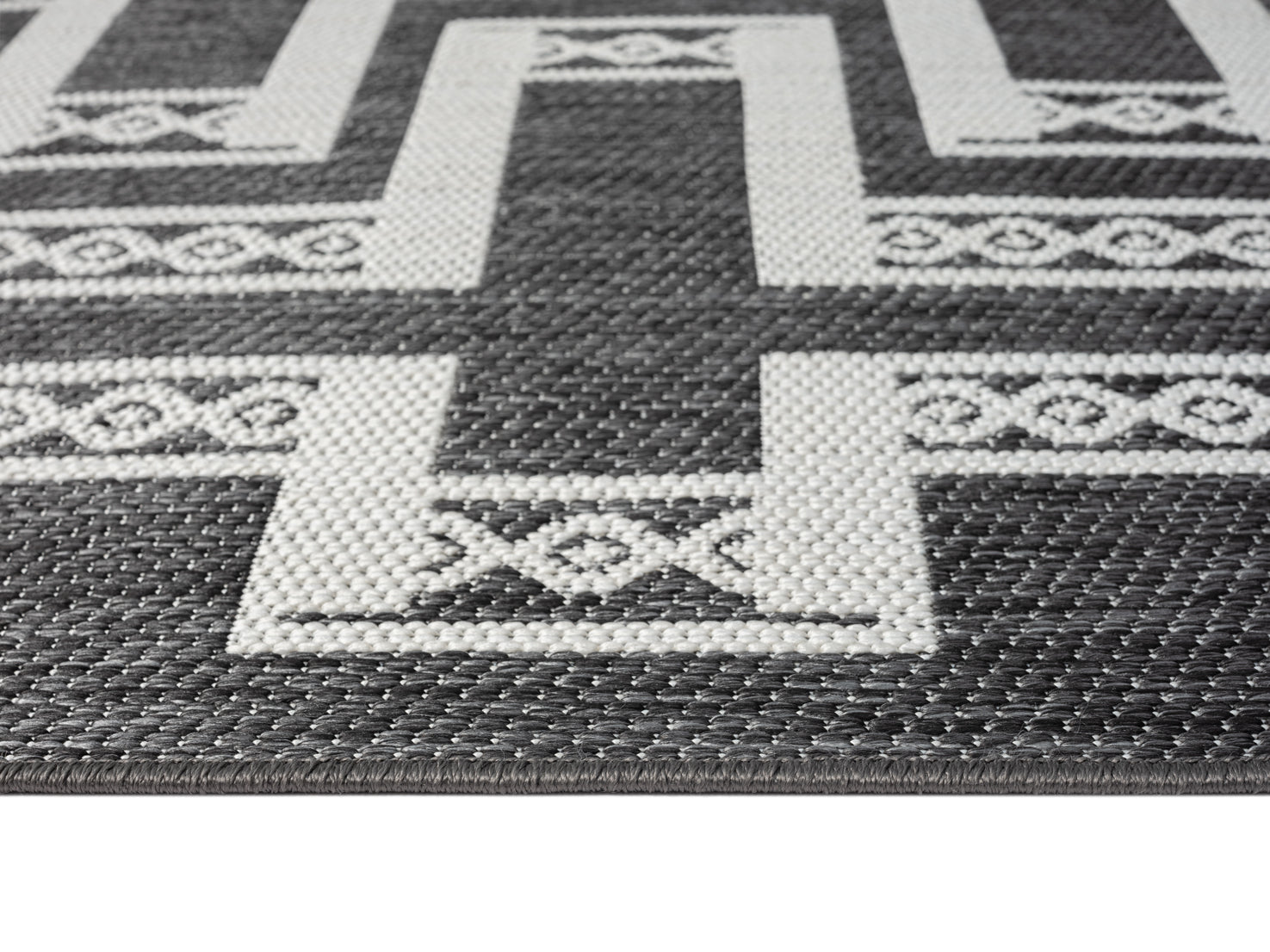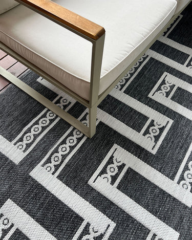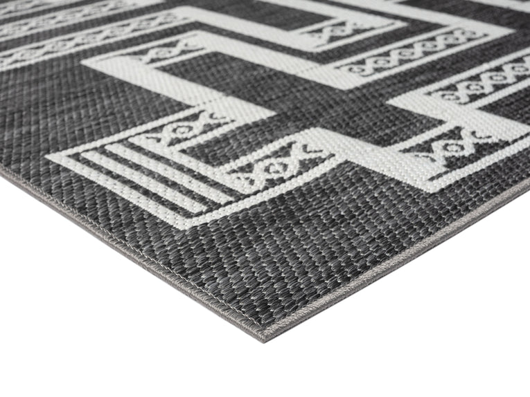 Teyona Charcoal and Ivory Tribal Flatweave Indoor Outdoor Rug