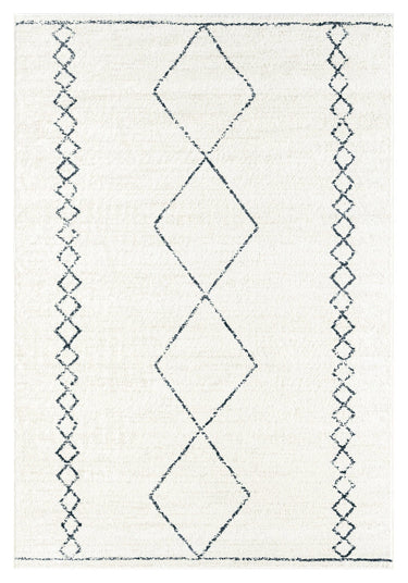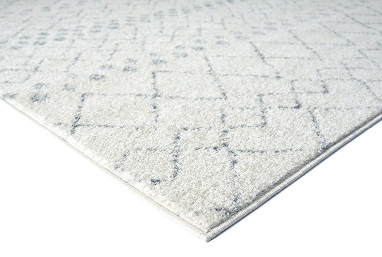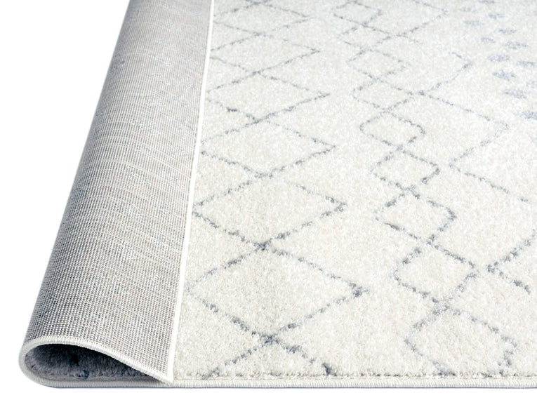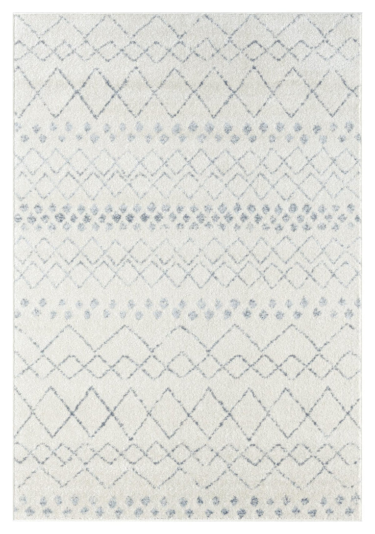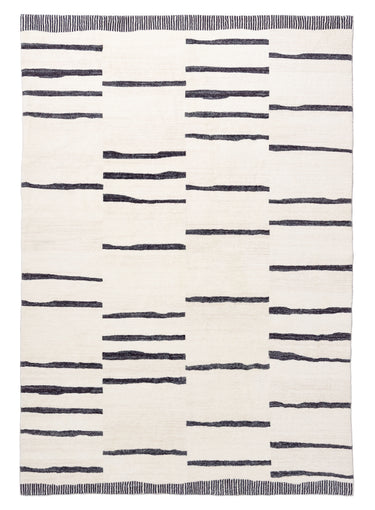 Toni is a stunning minimal ivory and grey transitional rug with a lined diamond tribal pattern.