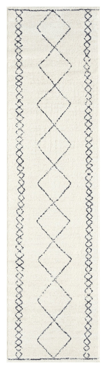 Tamira Grey and Ivory Diamond Tribal Runner Rug