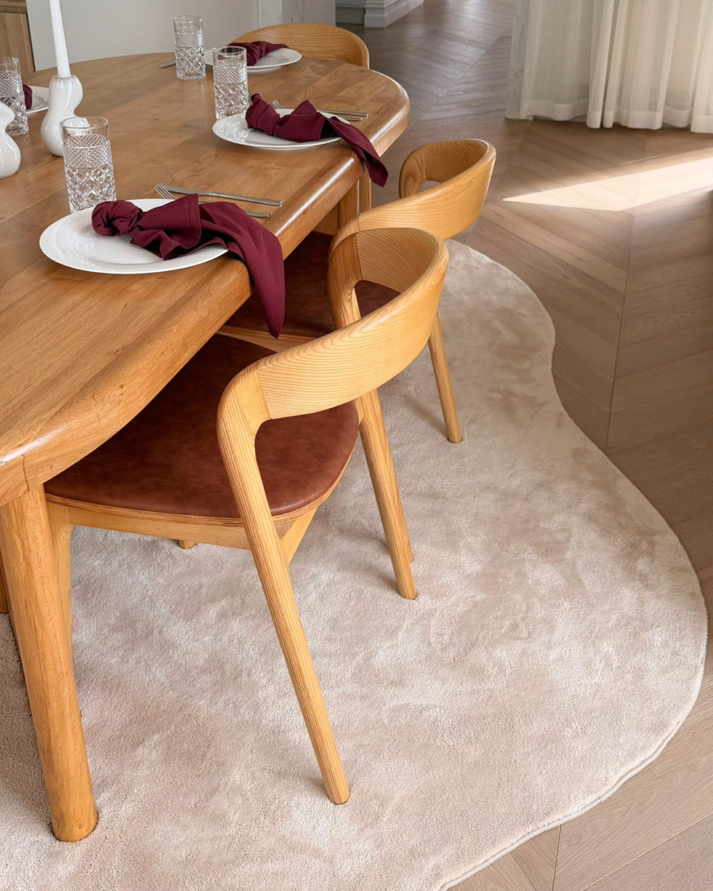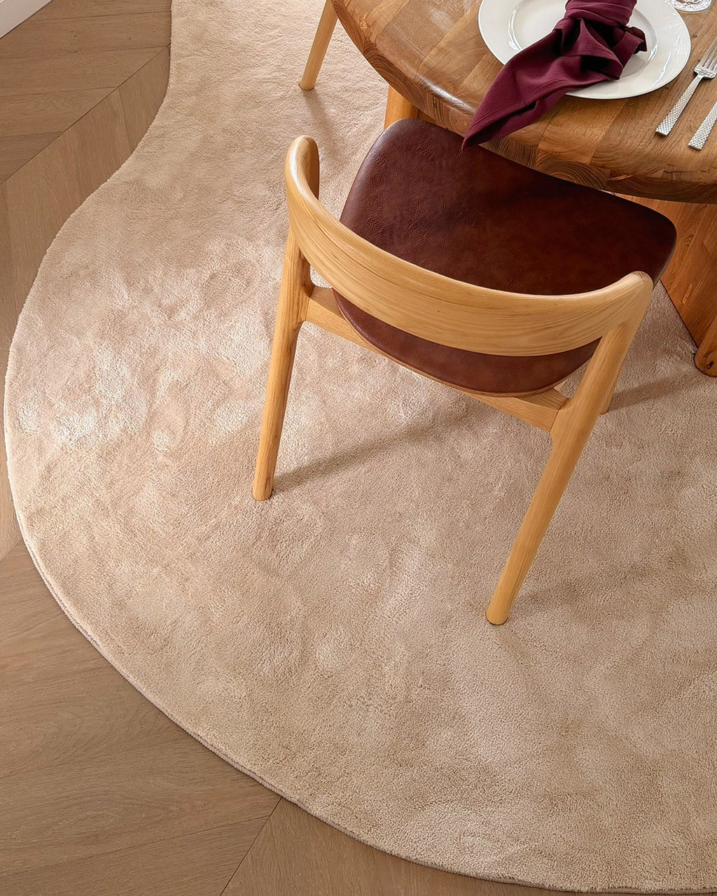 Viveca is a gorgeous washable and foldable rug featuring a minimal solid tone of beige with an irregular abstract curved shape. A timeless, modern, and unique design to add to any space.