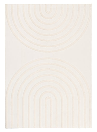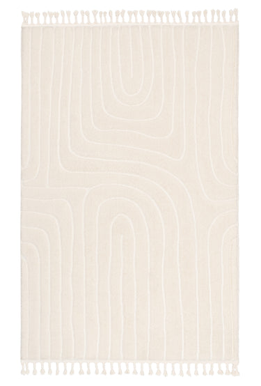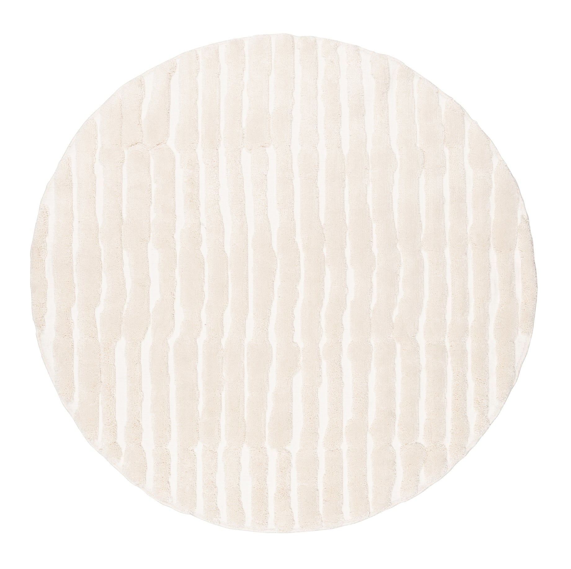 Yoanna is an ivory shag rug with a contemporary striped pattern.